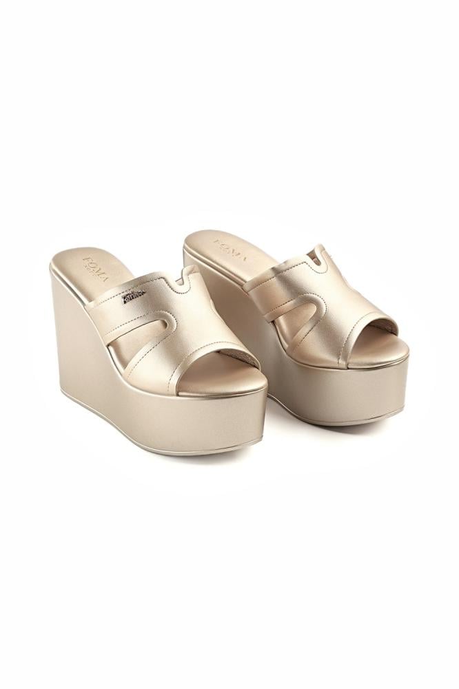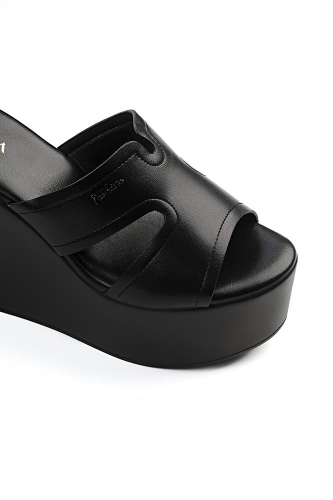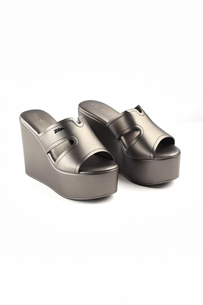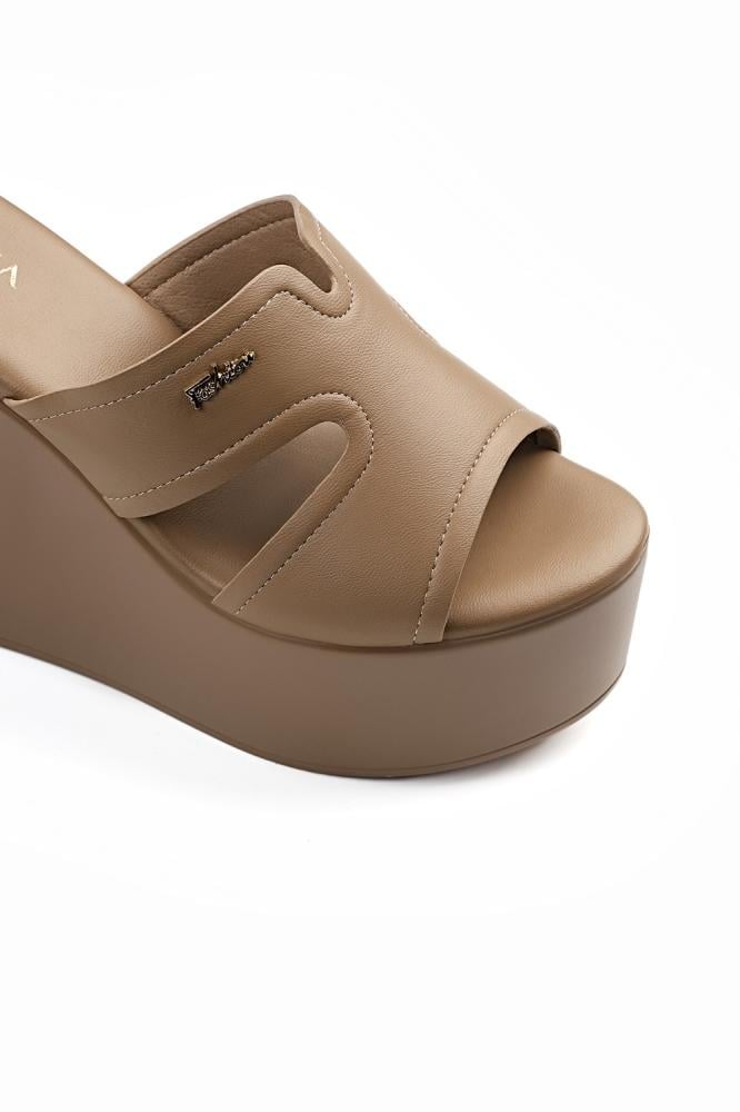 صندل كعب عالي مع تصميم بشكل نقش هندسي في الجزء العلوي يضفي عمقًا وجمالية على التصميم.