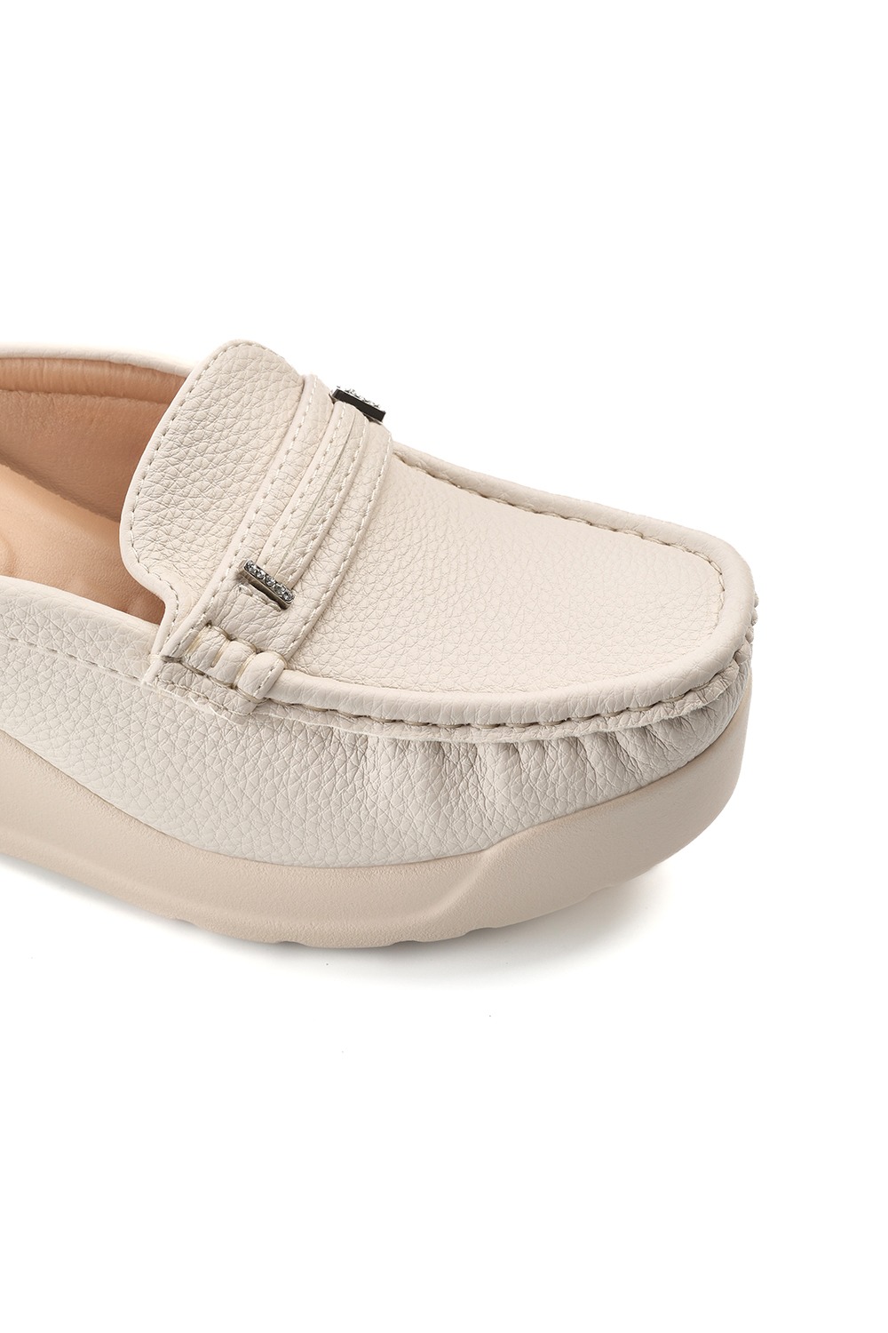 درزات ظاهرة حول حواف الصندل تعكس جودة التصنيع.