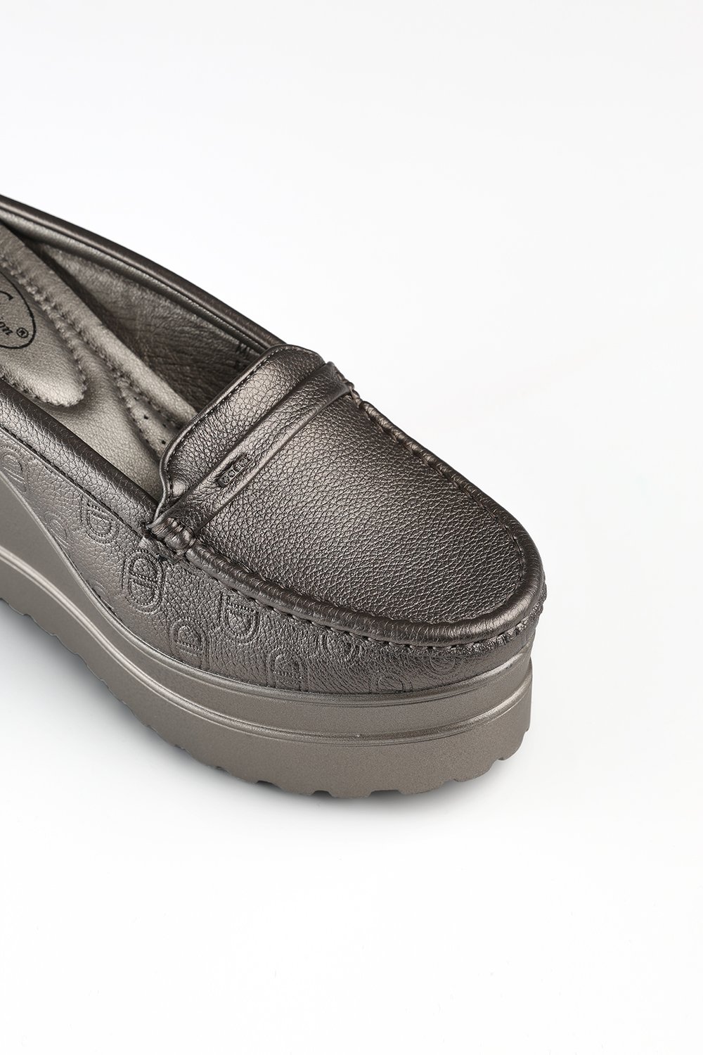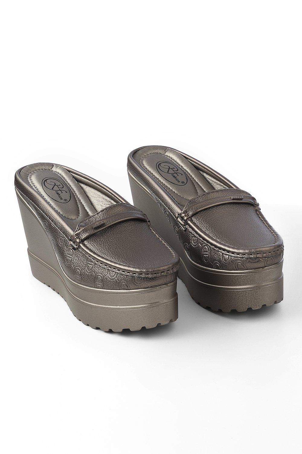 كعب إسفيني عريض من الخلف وضيق من الأمام لإبراز الأناقة والثبات.