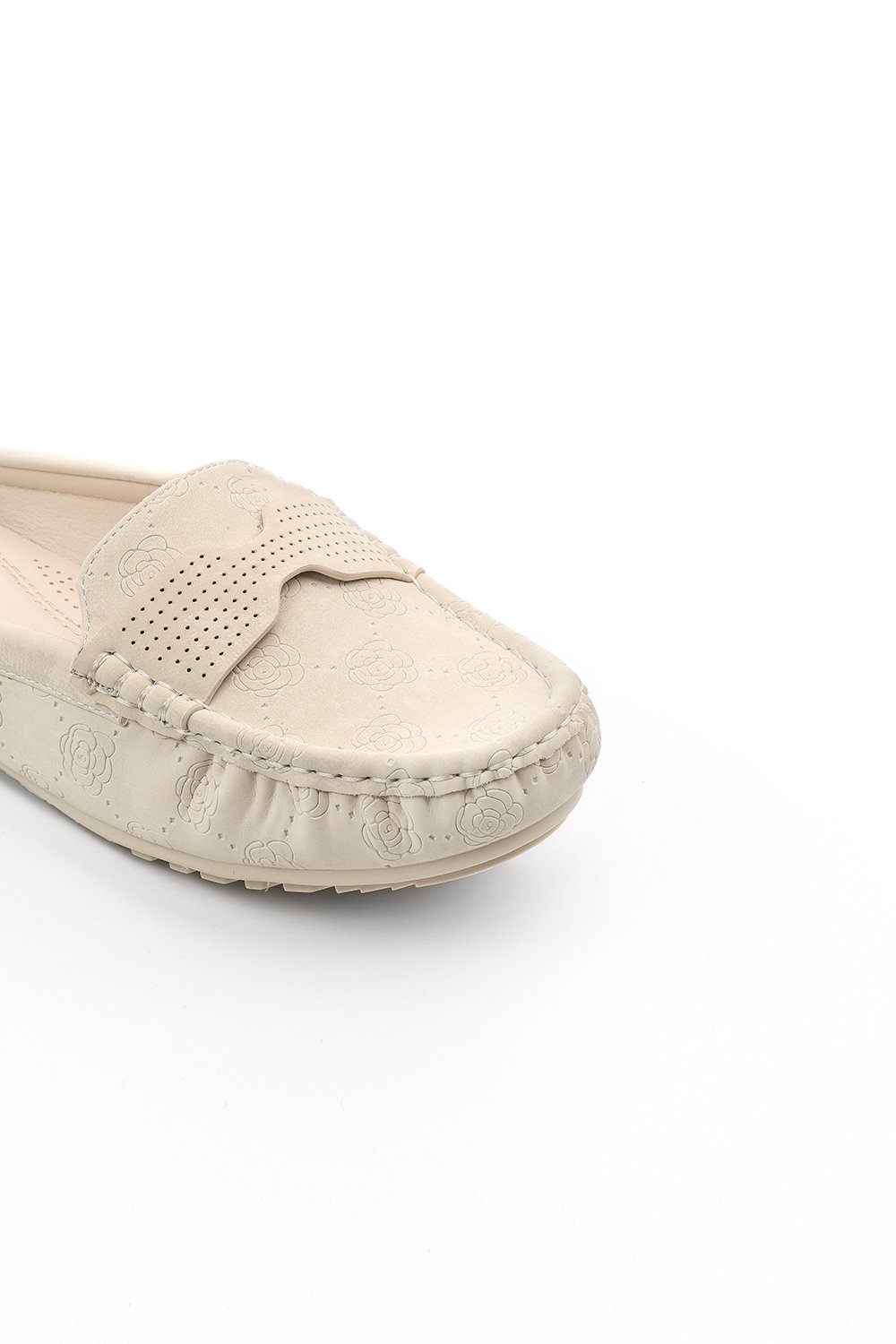 خطوط مُطرَّزة بشكل متوازٍ على الحواف لإضافة لمسة جمالية مع انحناءة لتُلائم شكل القدم.