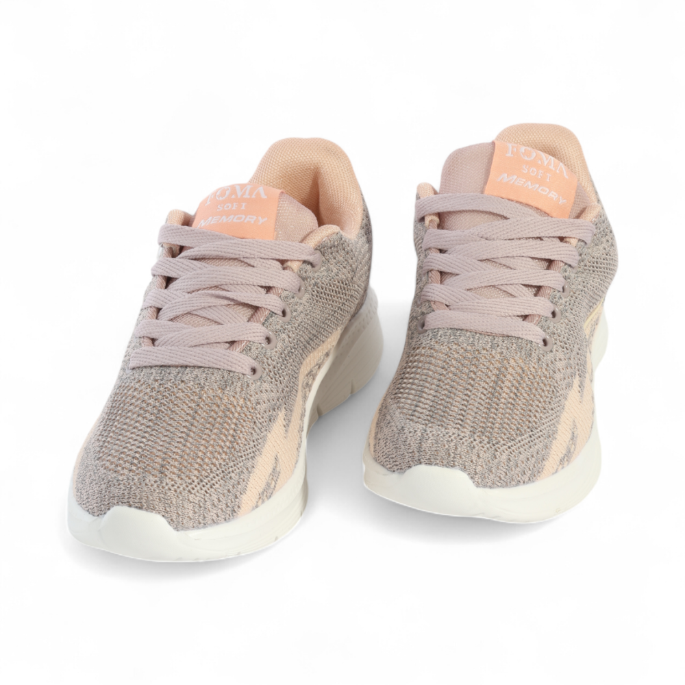 الجزء العلوي نسيج مُحاك خفيف ومرن، يُوفّر تهويةً ممتازة مع مَلمس عصري.