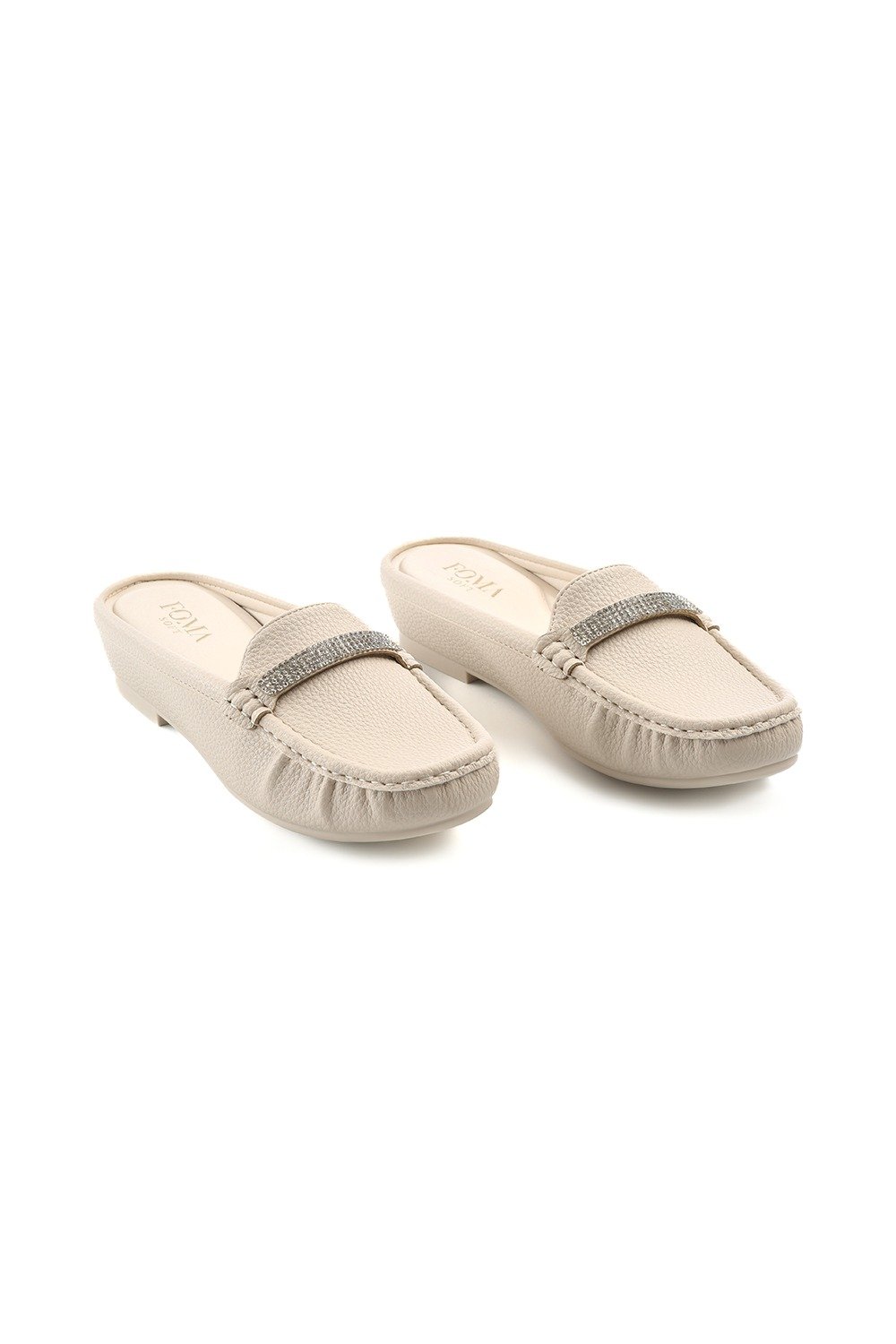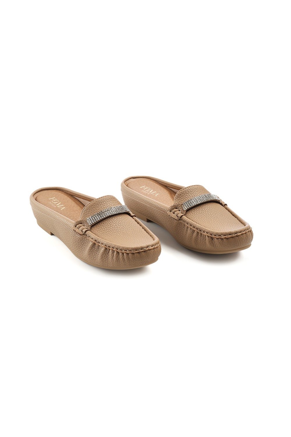 حذاء فلات طبي نسائي مفتوح من الخلف مزين بشريط ستراس