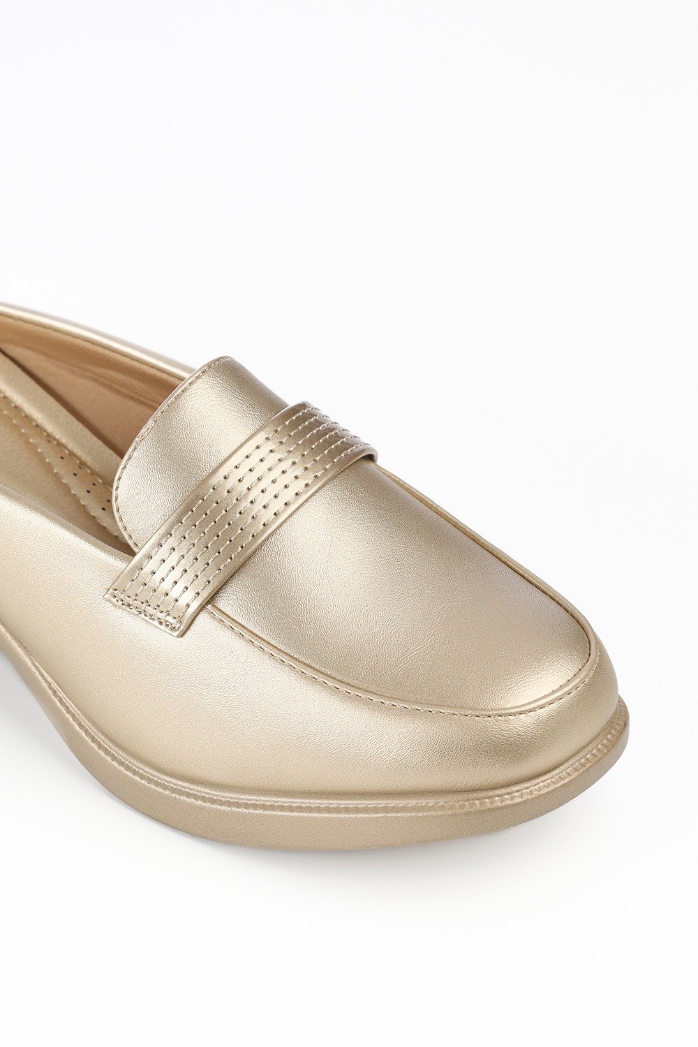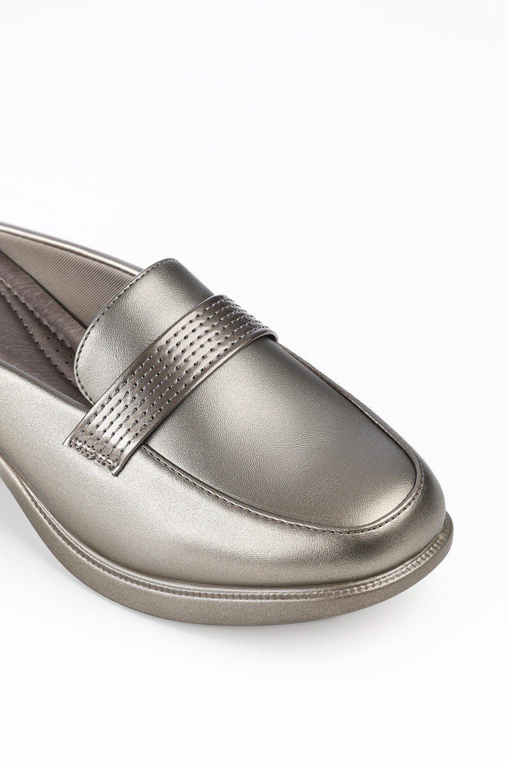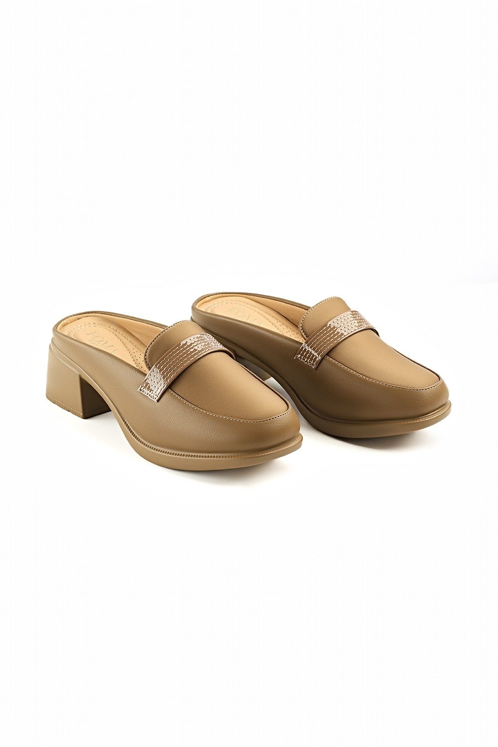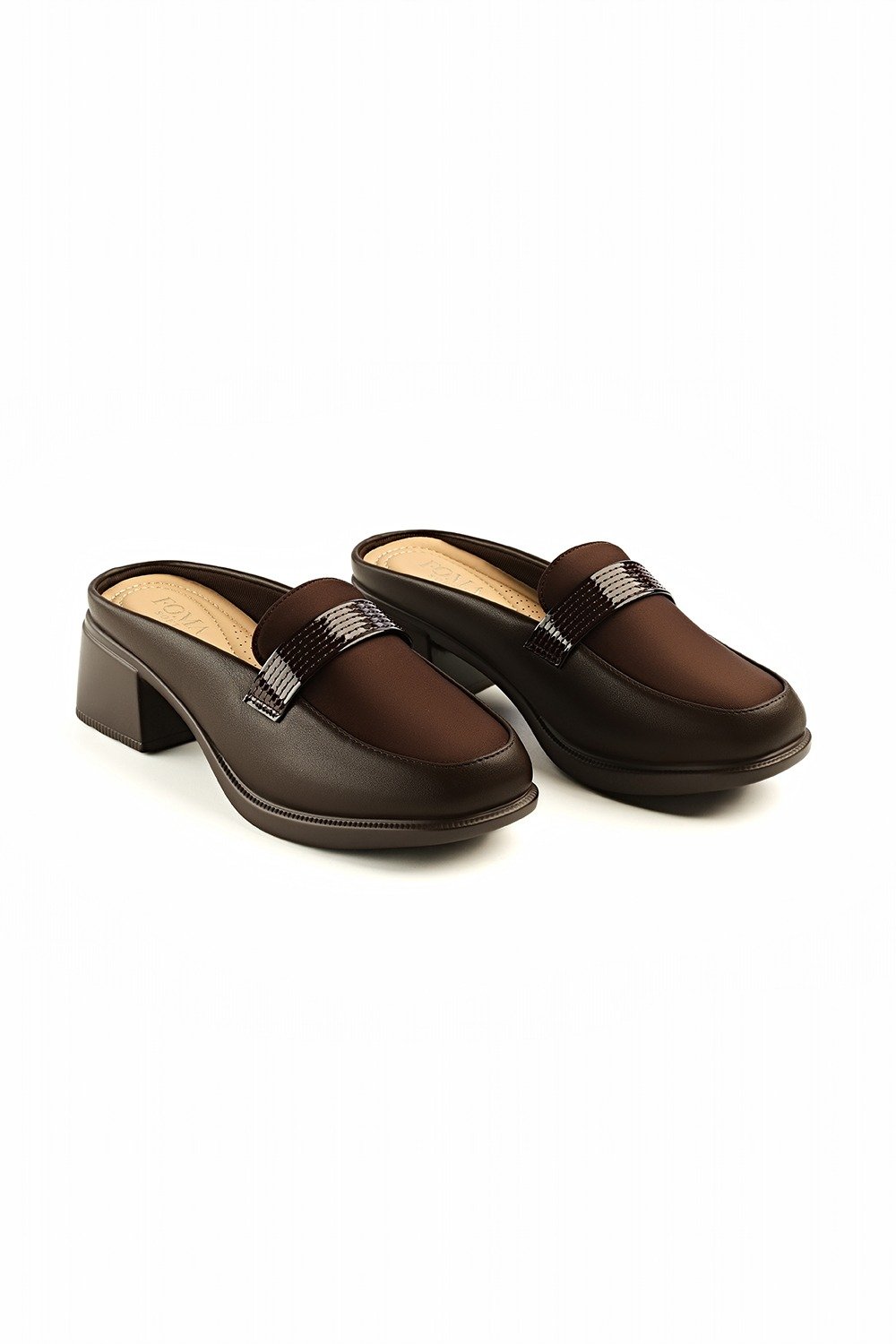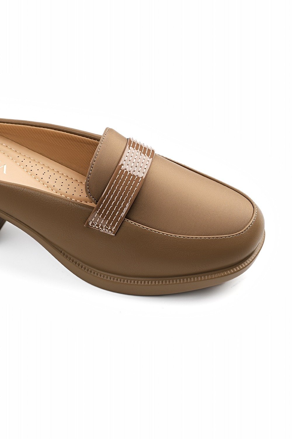 حذاء كعب متوسط طبي مفتوح من الخلف بلمعة وكعب منفصل يتوسطه شريط جلدي أنيق