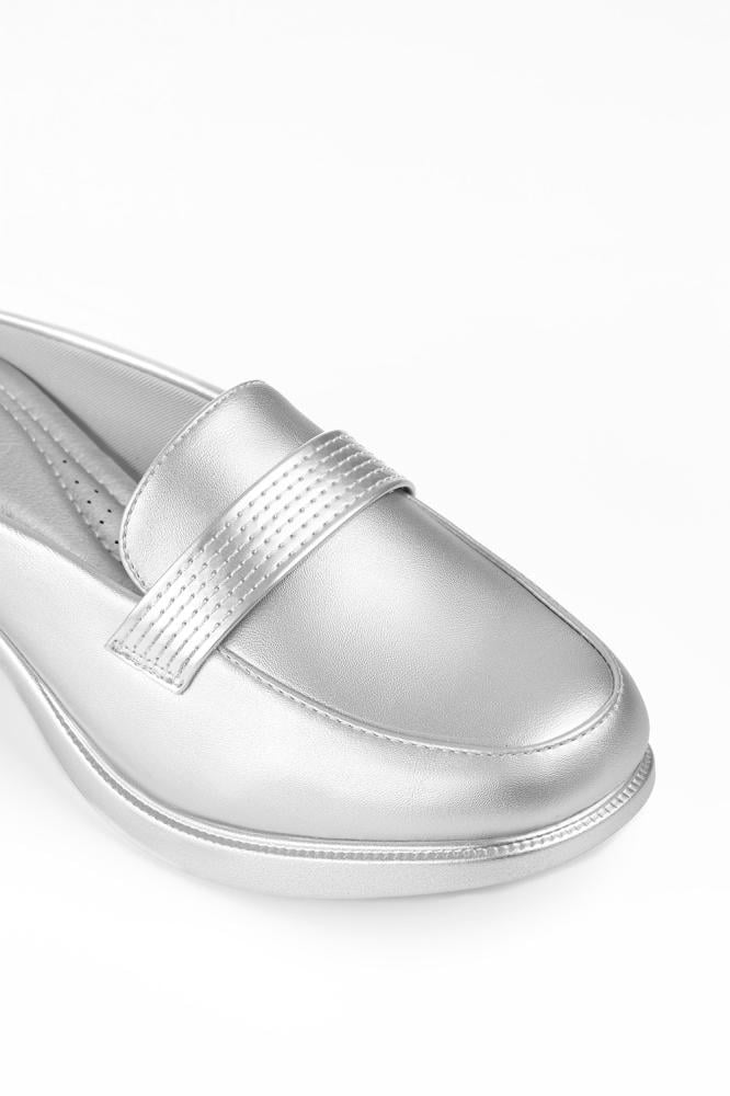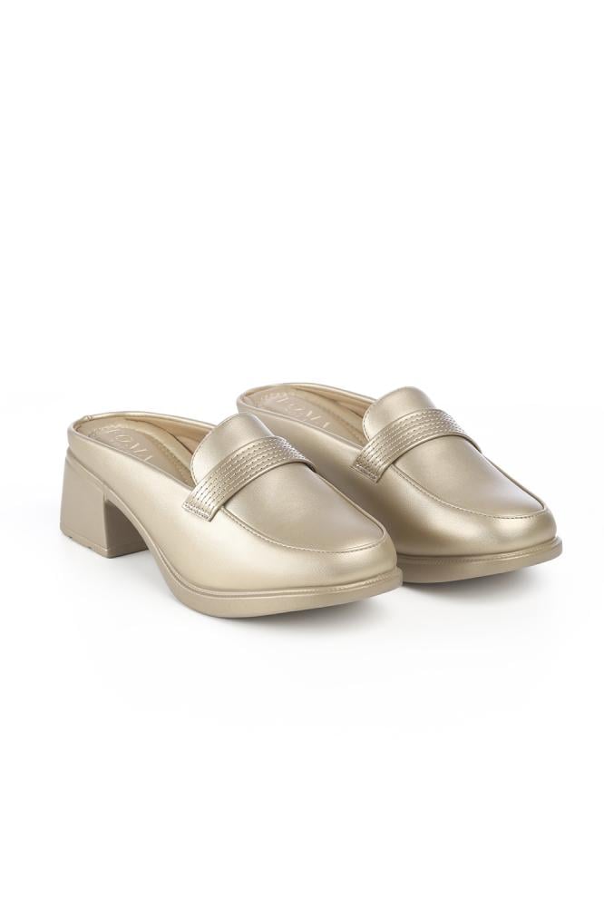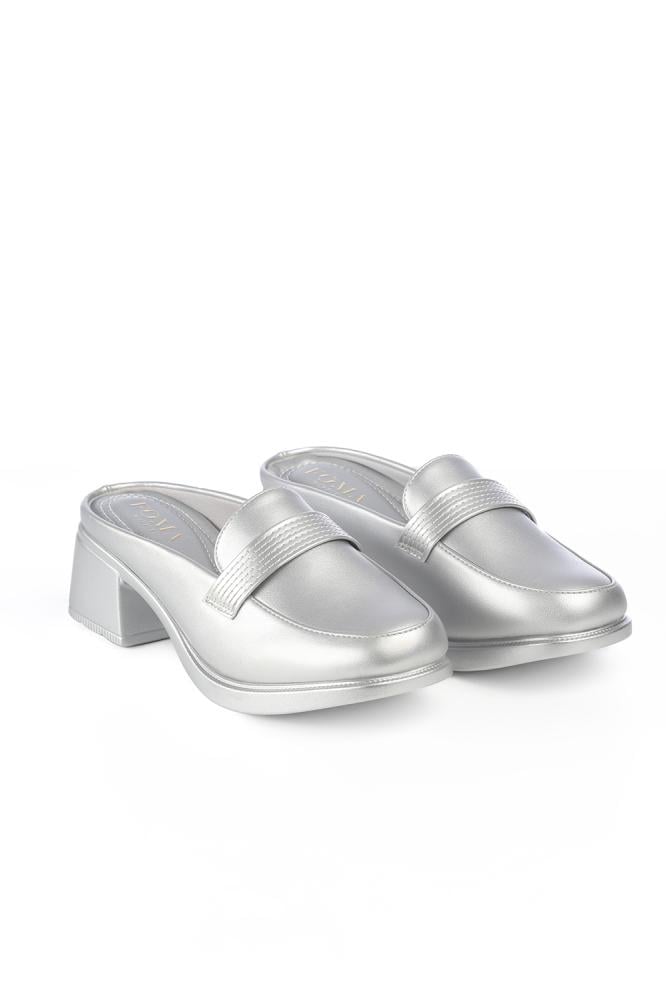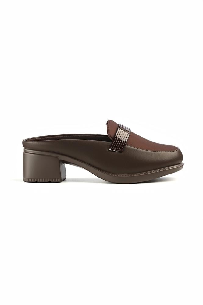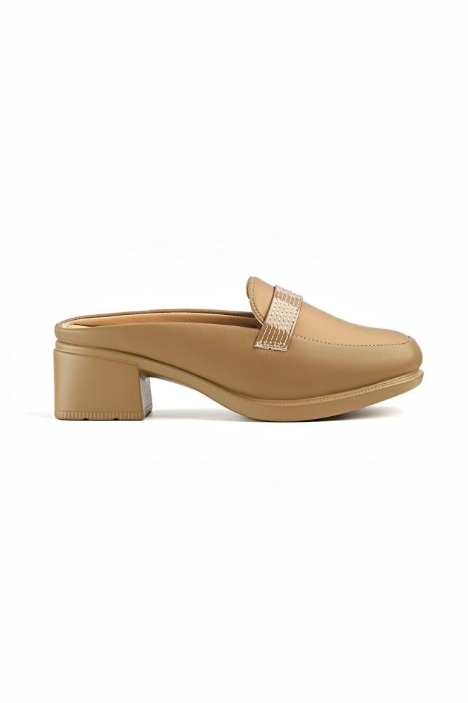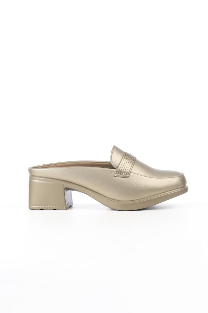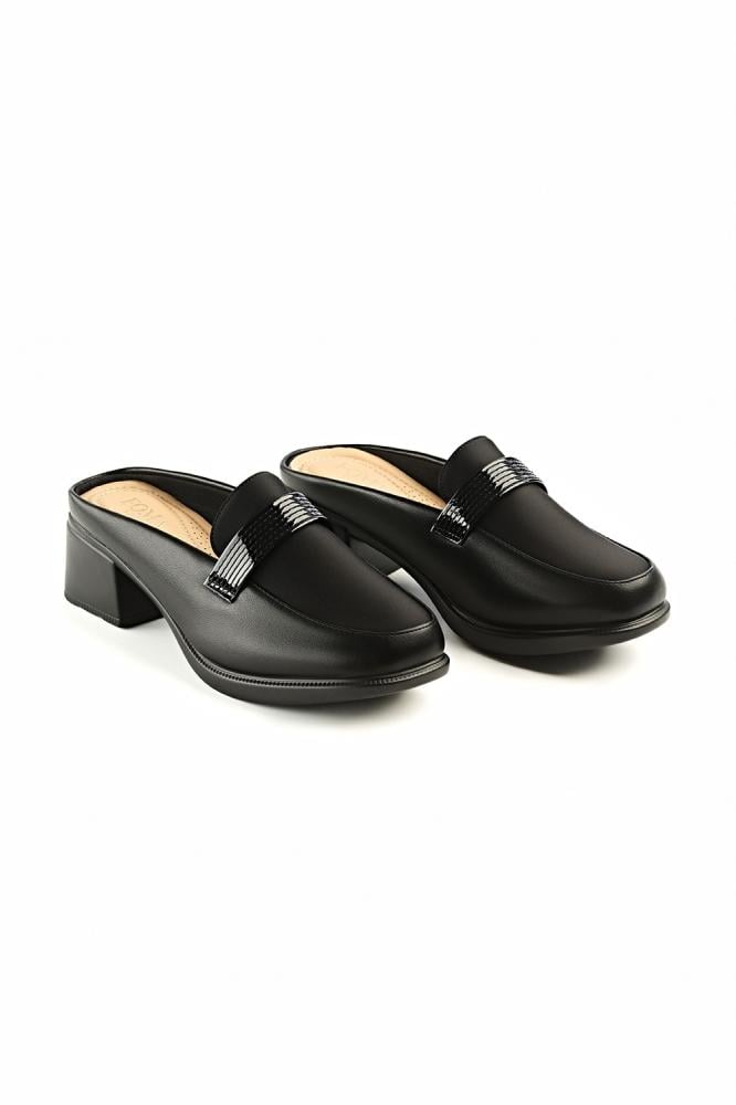 - زوج من أحذية "السليب-أون" مع كعب مُربَّع منخفض يَمنح ثباتًا دون تَكلف.