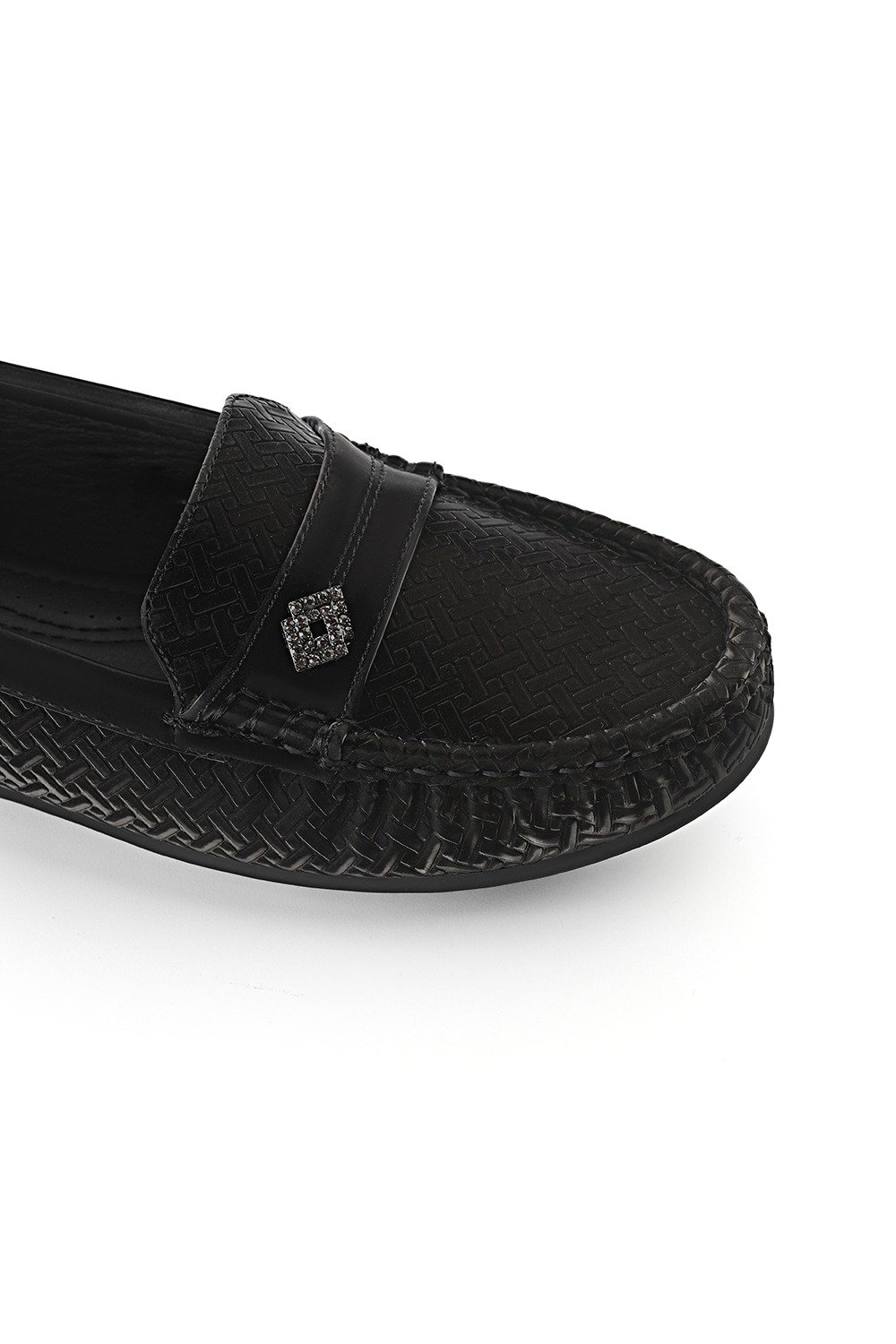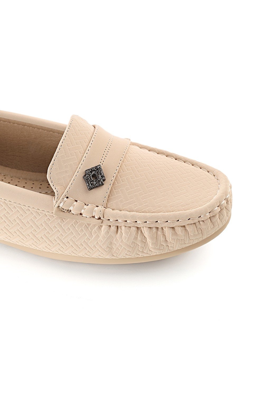 حذاء فلات طبي كاجوال مغلق مزود بشريط جلدي مزين بستراس على الطرفين