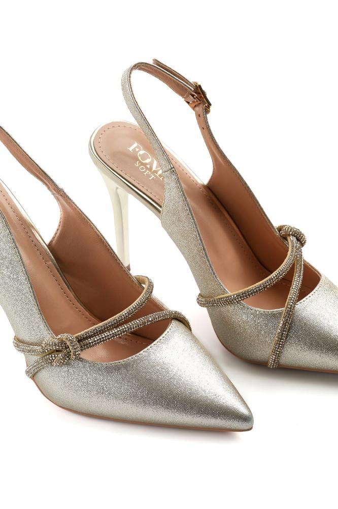 صندل نسائي بكعب عالِ وحزام بشكل عقدة