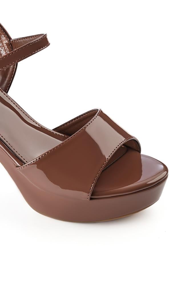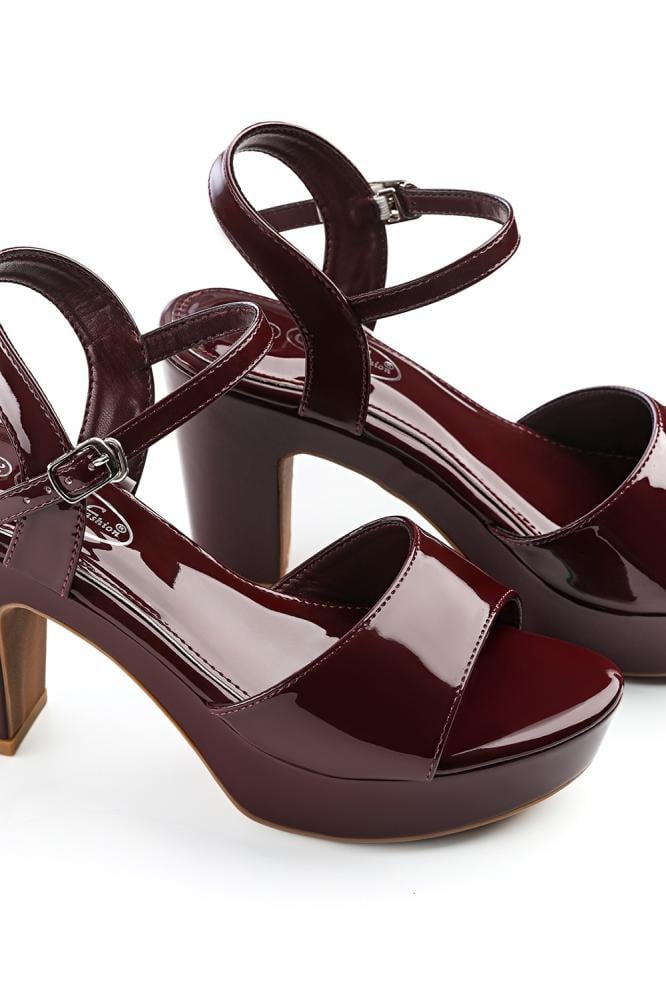صندل نسائي بكعب عالي عريض ومقدمة مفتوحة.