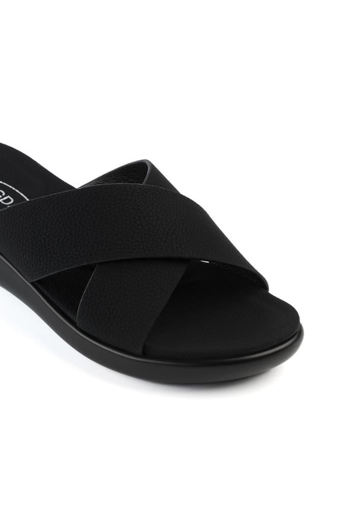 1. يتميز التصميم بشرائط عريضة تحتوي على فتحات هندسية على شكل حرف x تمنحه طابعًا عصريًا وتهوية ممتازة.