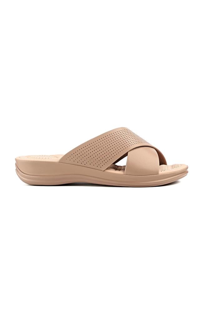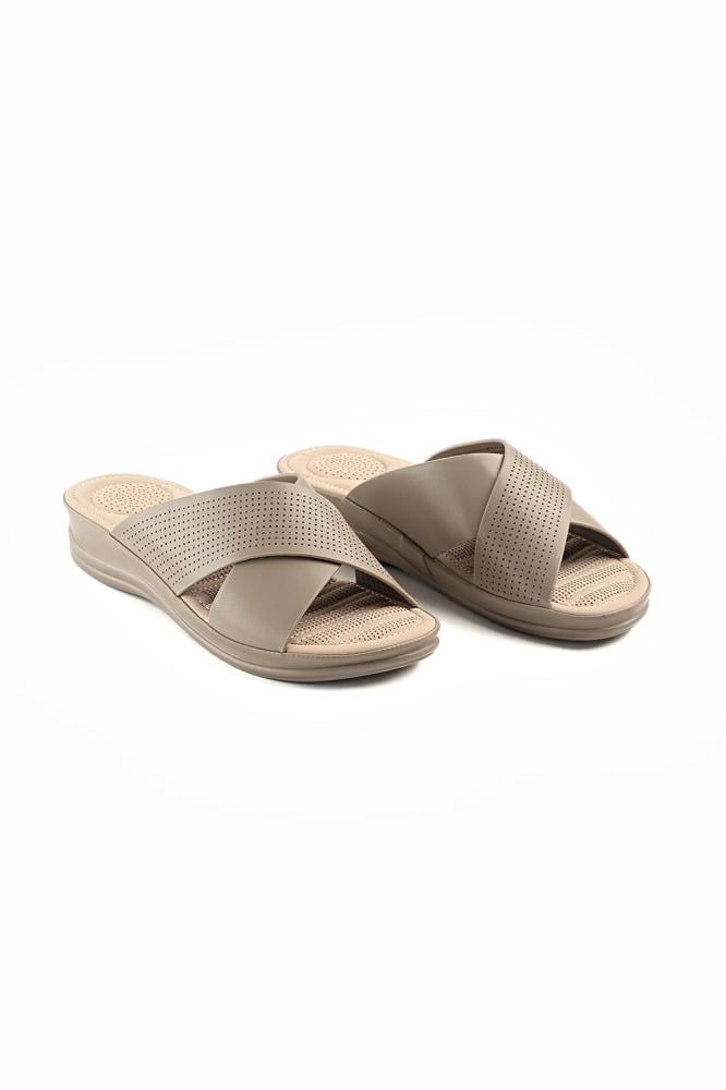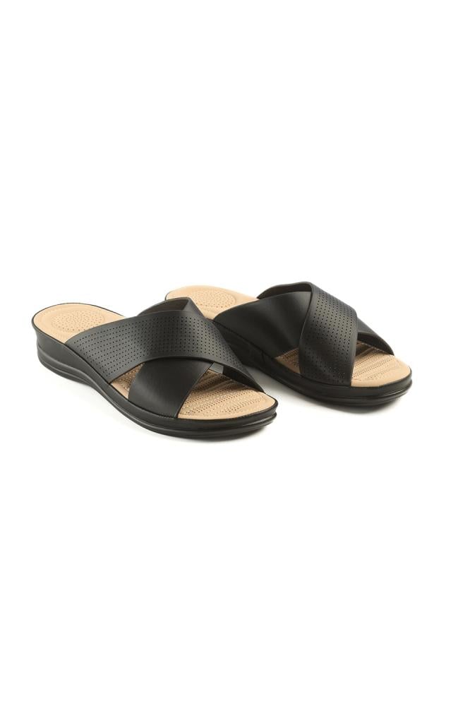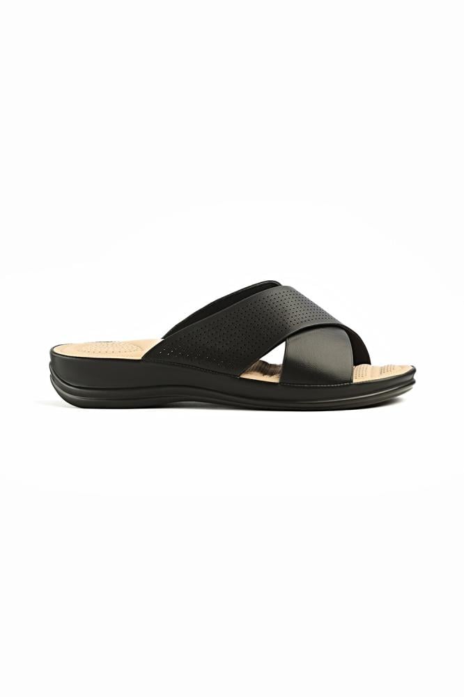 - يتميز التصميم بشرائط عريضة تحتوي على فتحات هندسية على شكل حرف x تمنحه طابعًا عصريًا وتهوية ممتازة.