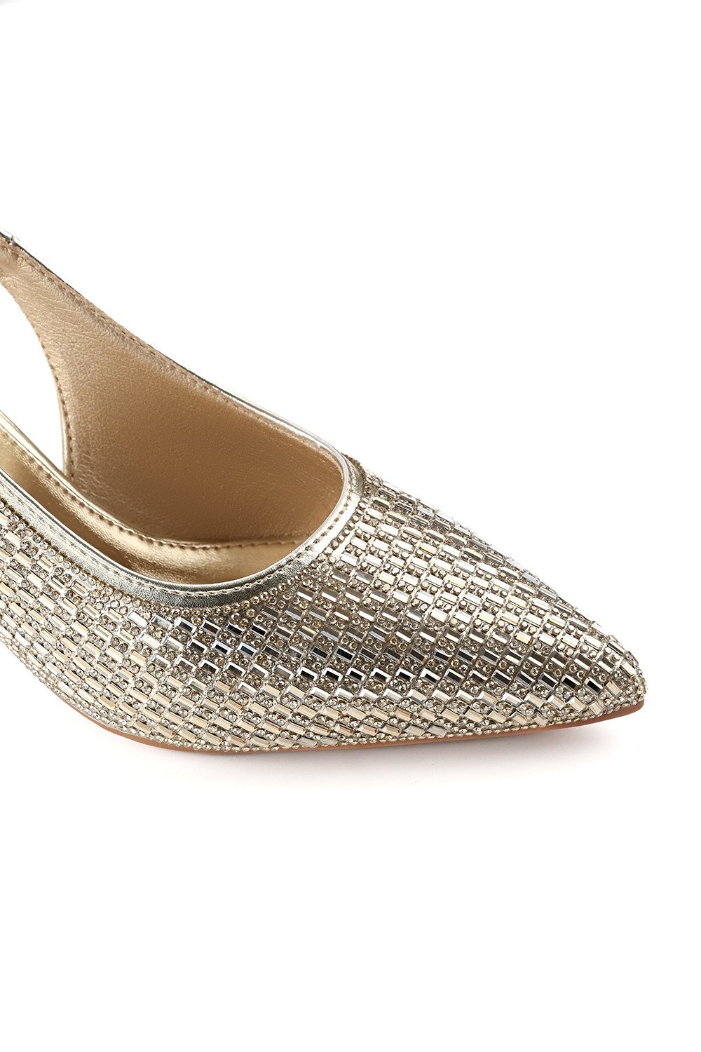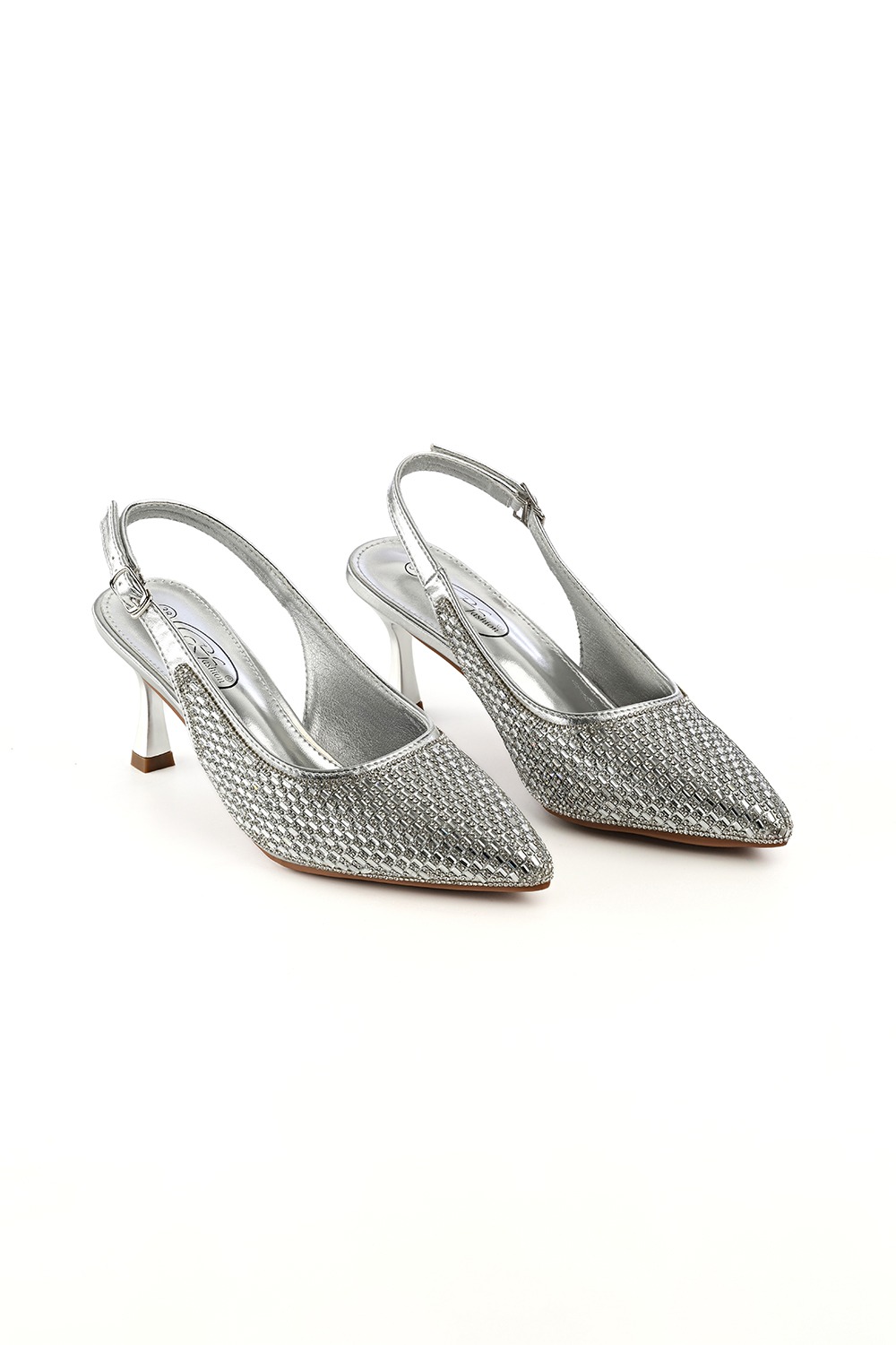 حزام يلتف حول الكعب مع مشبك صغير على الجانب للإغلاق والتعديل، مما يضيف لمسة جمالية وعملية.