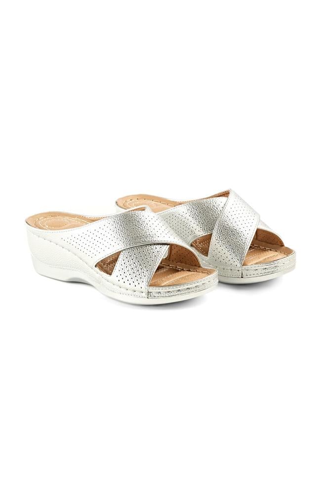 - كعب إسفيني متوسط الارتفاع مع قاعدة عريضة توفر ثباتًا أثناء المشي.