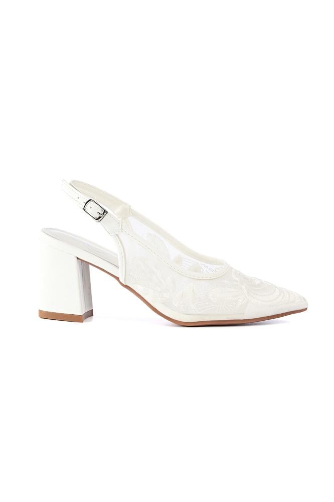- رباط كعب من نفس القماش مع إبزيم معدني.