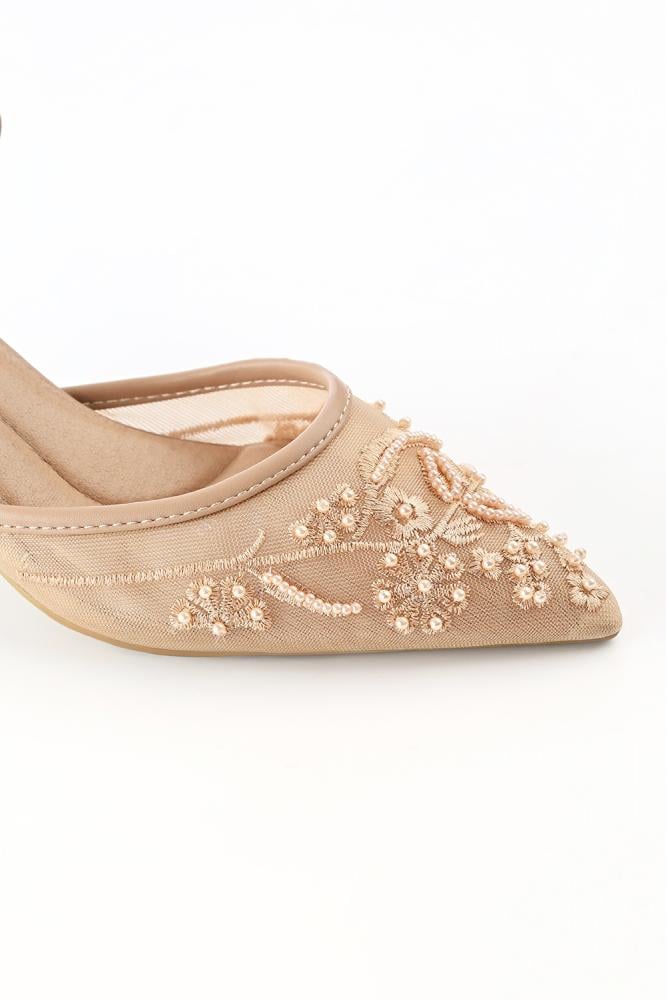 زخرفة نباتية مطرزة تغطي مقدمة الحذاء