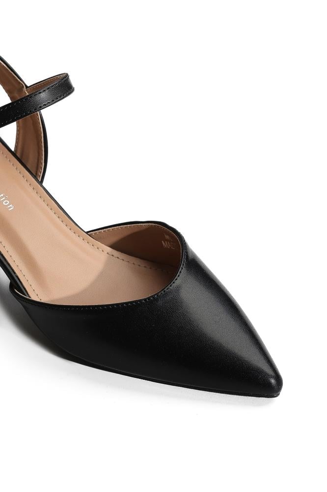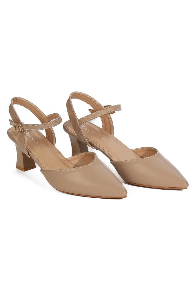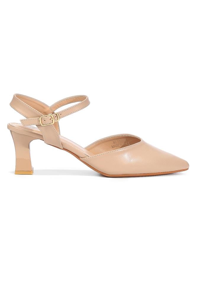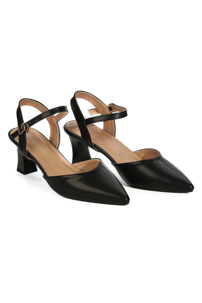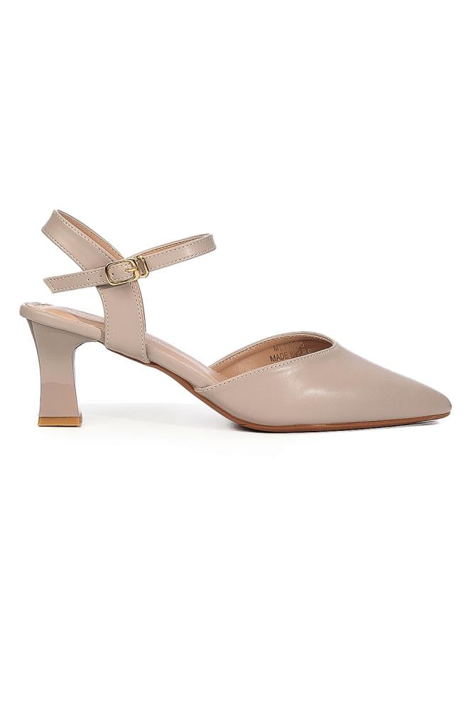 صندل نسائي بكعب عريض متوسط الارتفاع ذو تصميم كلاسيكي عصري يناسب المناسبات شبه الرسمية أو اليومية.