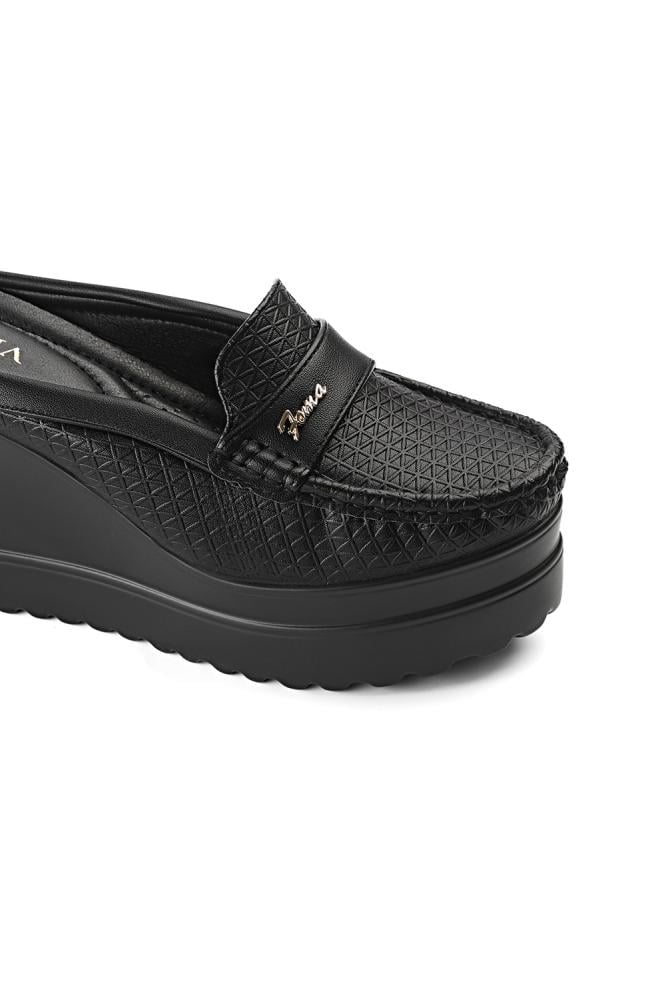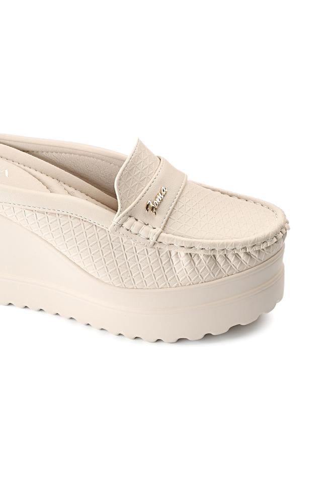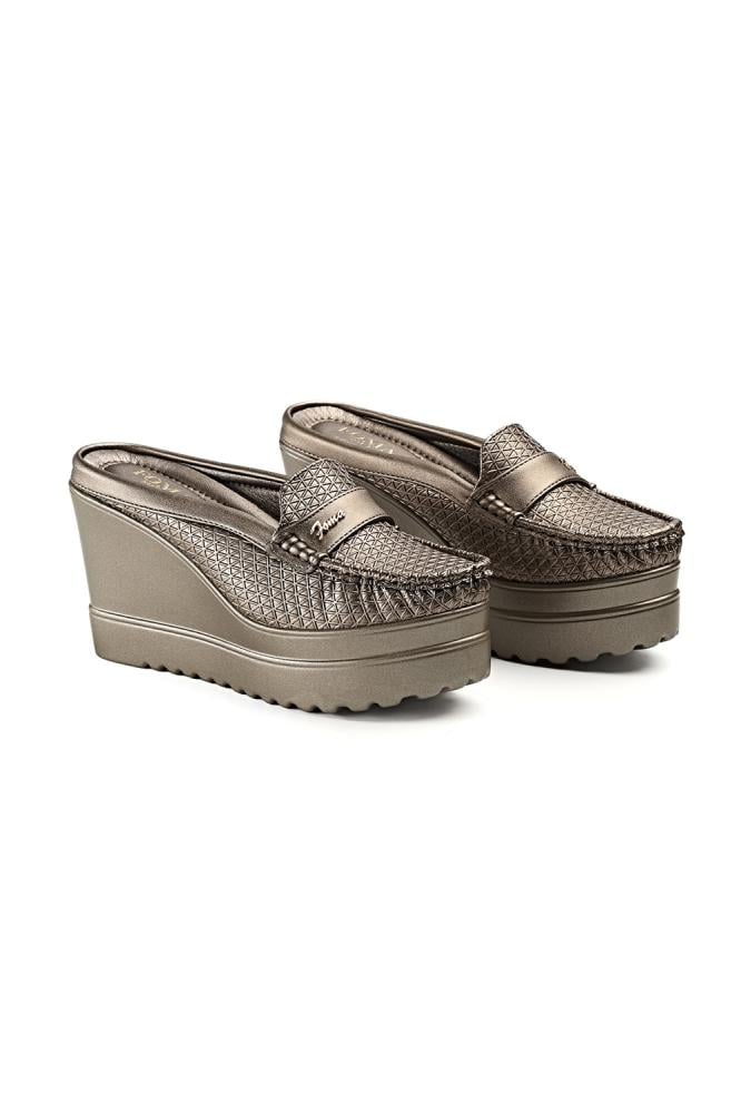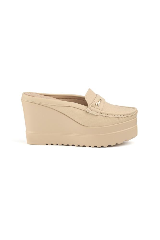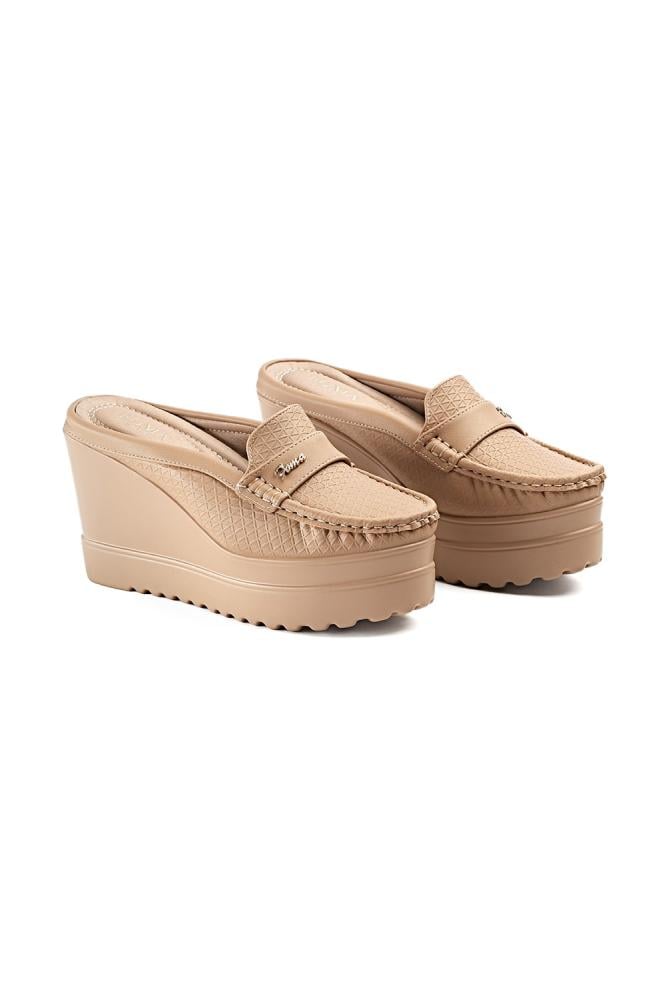حذاء نسائي بكعب إسفين (Wedge) بنمط سهل الارتداء (Slip-On)، مناسب للمناسبات اليومية والرسمية الخفيفة.