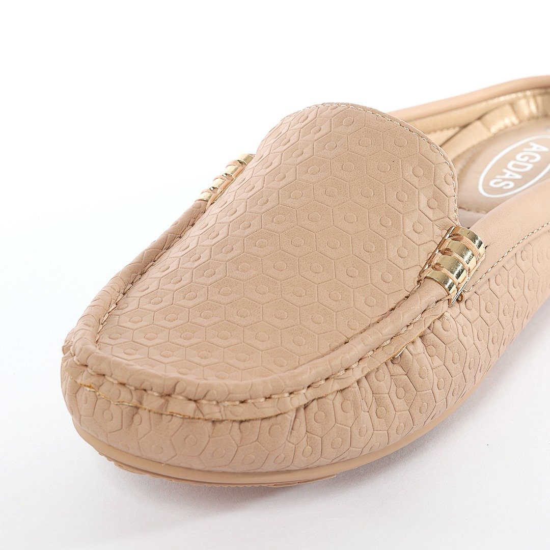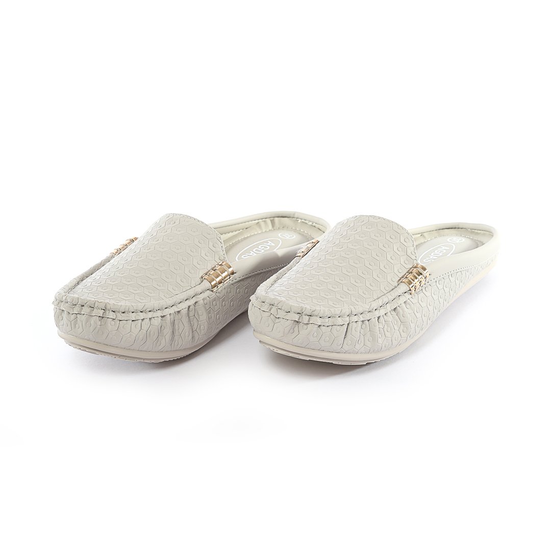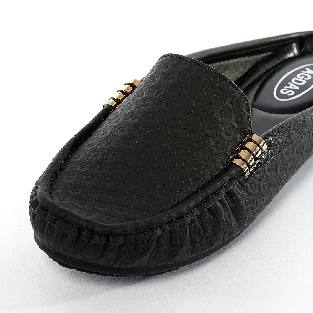 حذاء فلات طبي نسائي مفتوح من الخلف مزين بقطعة معدنية على الجوانب
