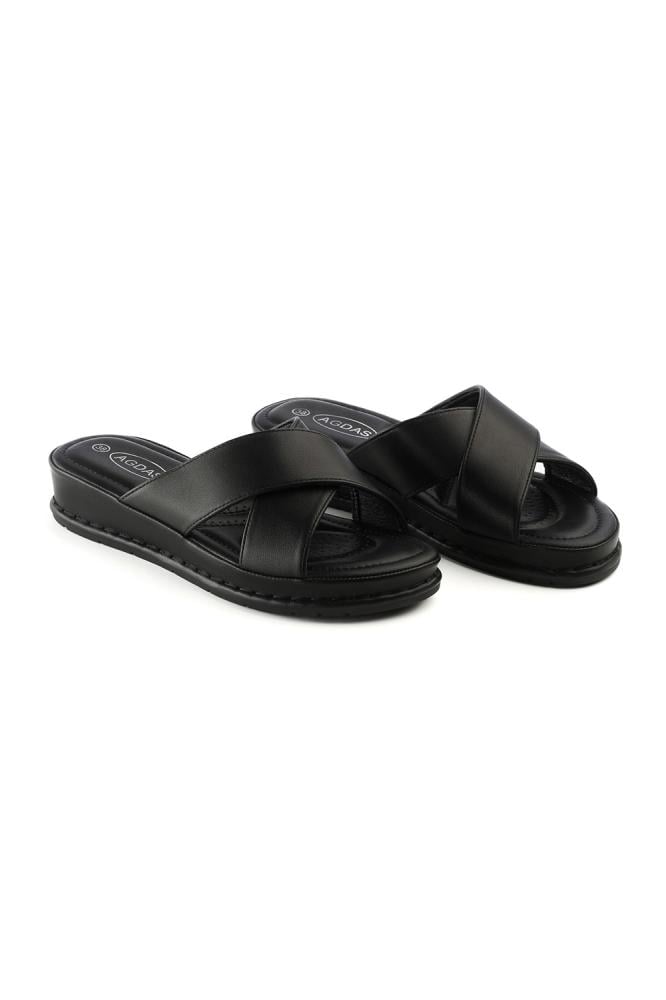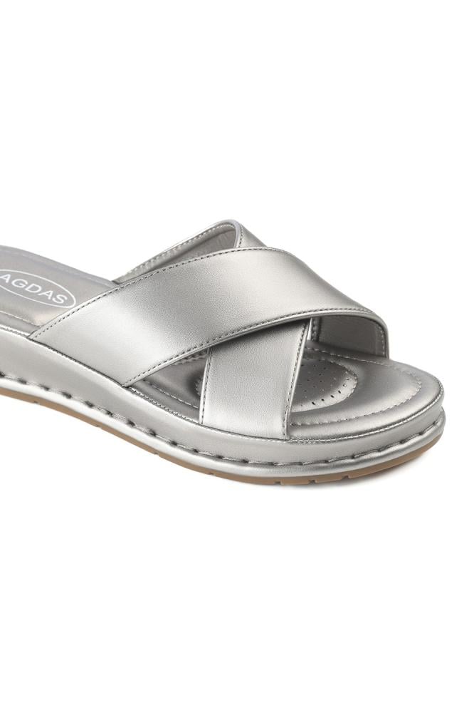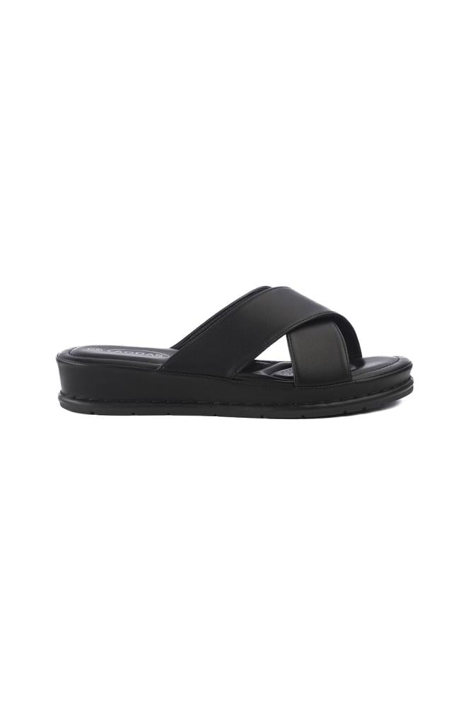 - يتميز التصميم بشرائط عريضة تحتوي على فتحات هندسية على شكل حرف x تمنحه طابعًا عصريًا وتهوية ممتازة.