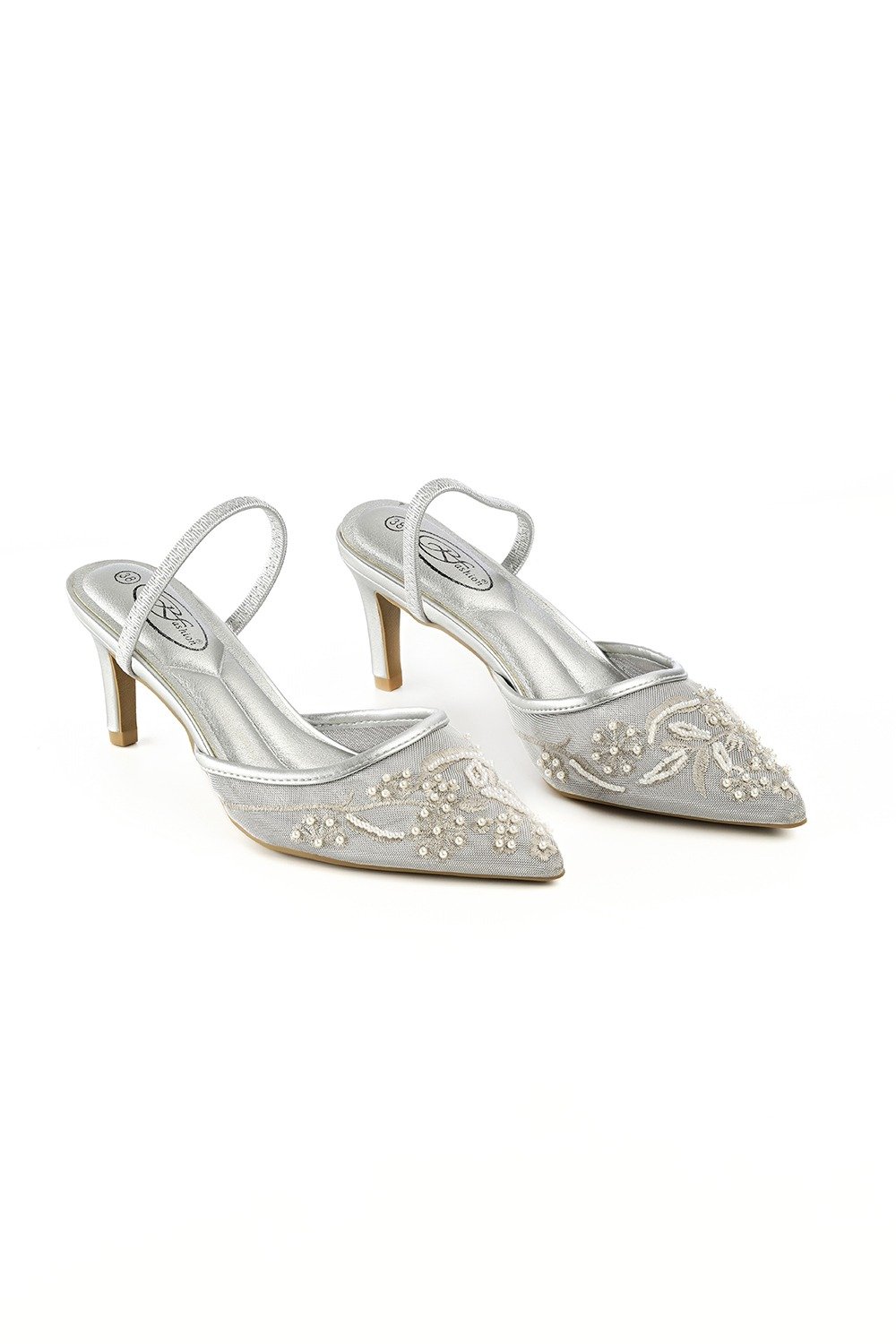 حذاء كلاسيكي سهرة أنيق بمقدمة مدببة مصنوعة من شبكة مطرزة بكعب رفيع