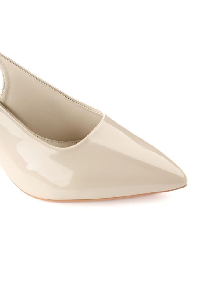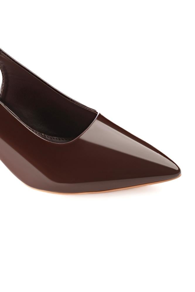 "انسيابية الجلد اللامع البراق ونعومة ملمسه تمنح الحذاء لمسة فاخرة وجاذبية لا تُقاوم، تضيء إطلالتكِ بأقل مجهود."
