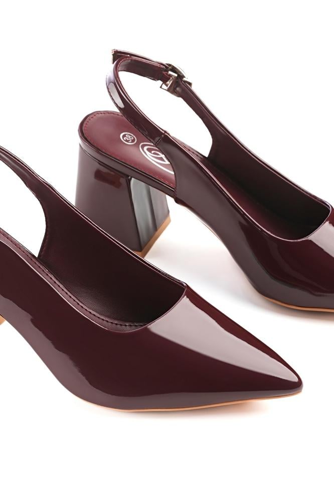- كعب كتلة (Block Heel) متوسط الارتفاع مع حزام خلفي قابل للتعديل.