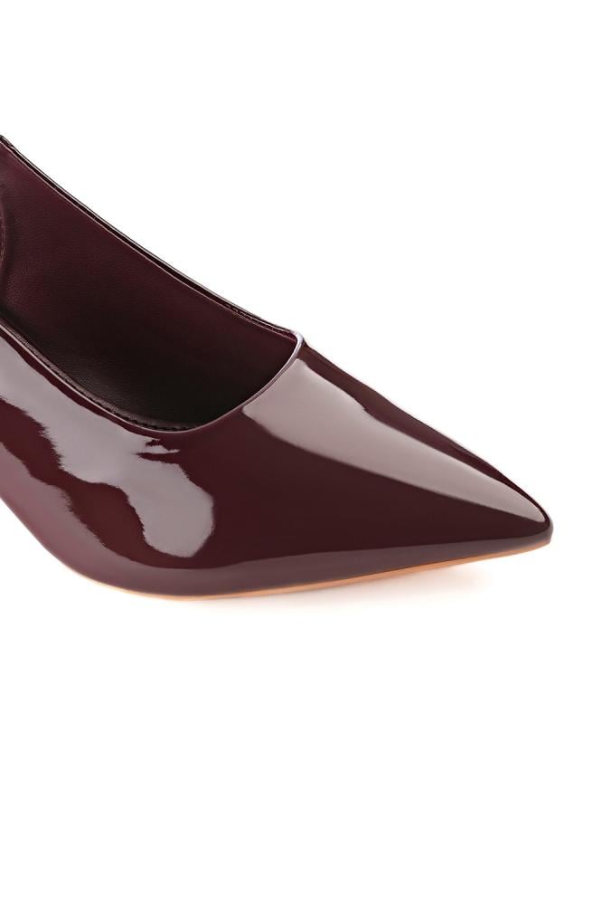 - المادة الجلدية اللامعة قد تكون أقل مرونة من الجلد العادي، لكن تصميم المقدمة الحادة عادةً ما يوفر مساحة كافية لأصابع القدم.