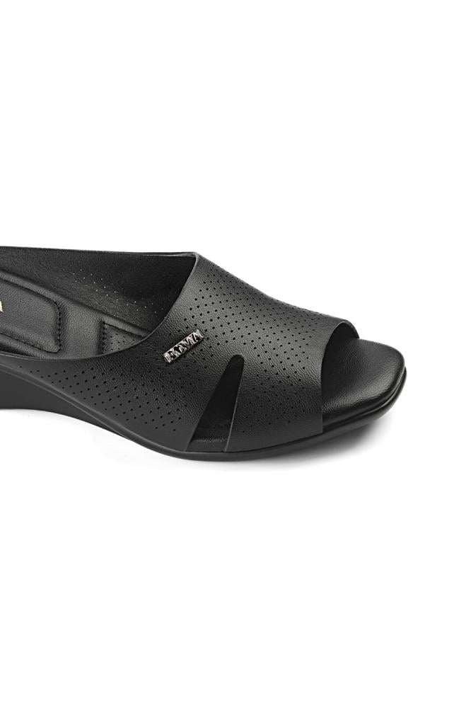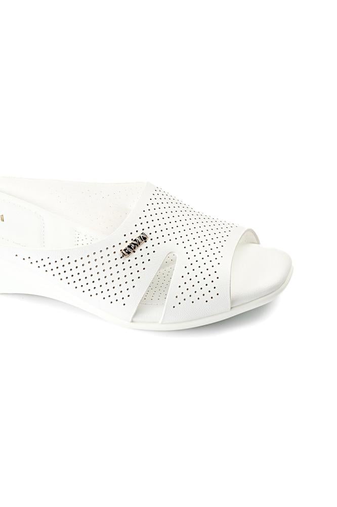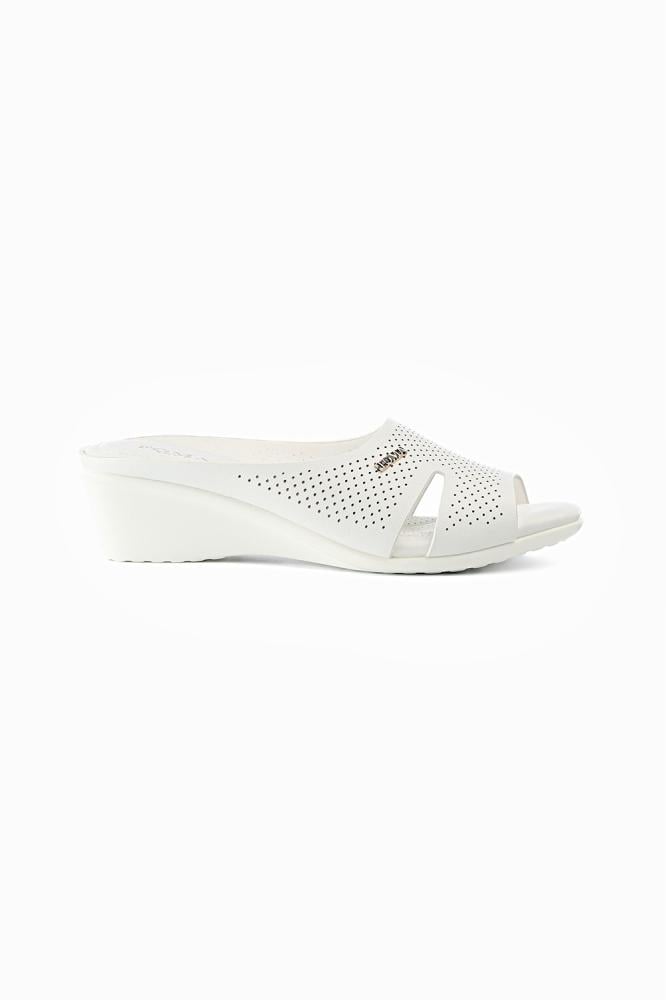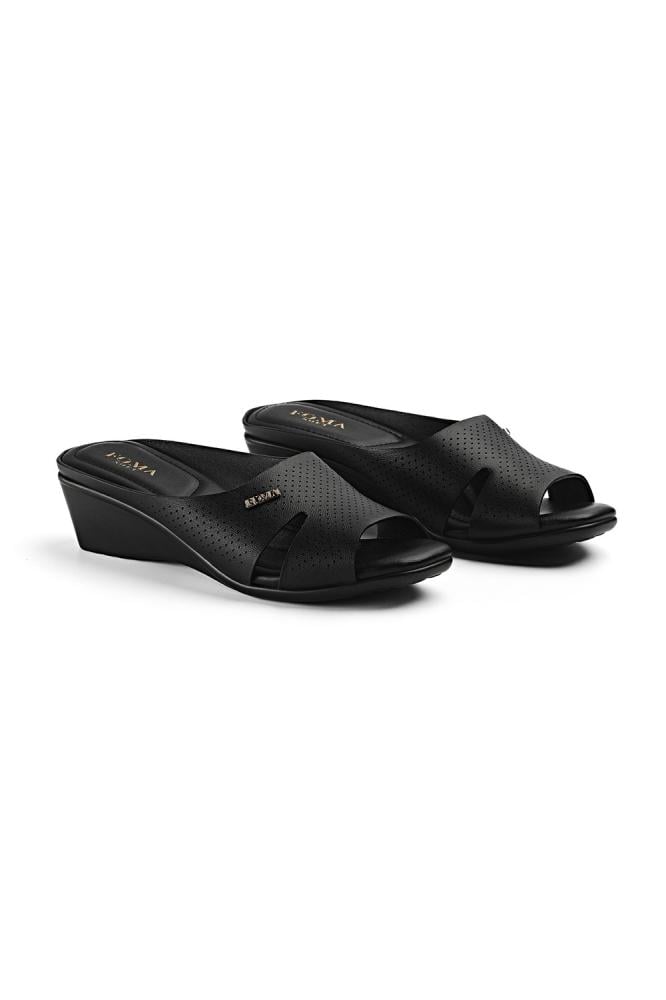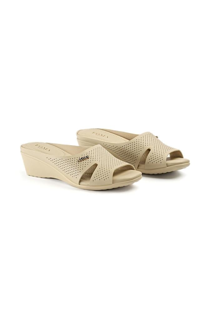 صندل نسائي بكعب إسفين (Wedge Slide) من نوع Slip-On مفتوح من الأمام، يقدّم إطلالة أنيقة وعصريّة مع سهولة في الارتداء.
