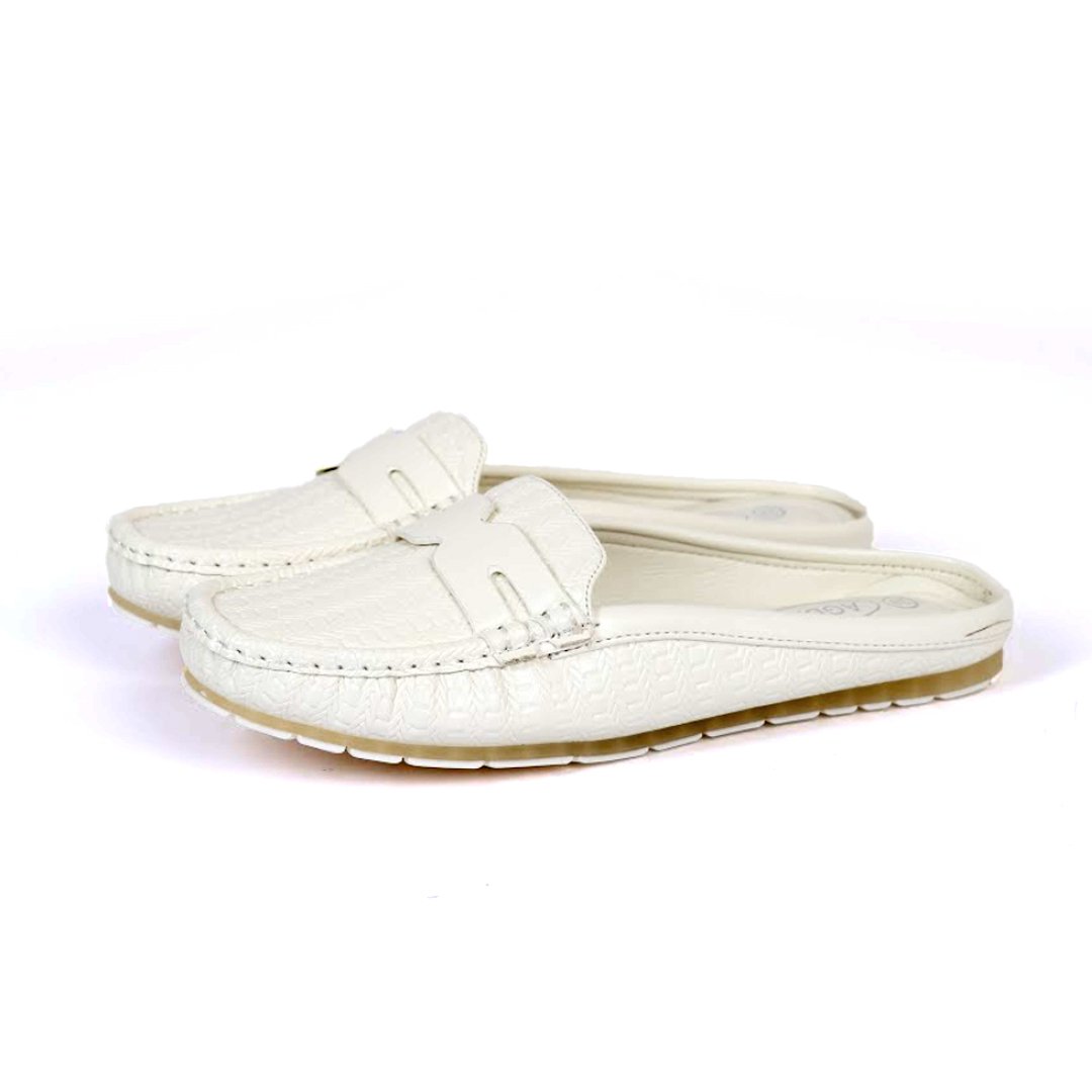 حذاء فلات نسائي طبي مفتوح من الخلف مزين بشريط جلدي عريض